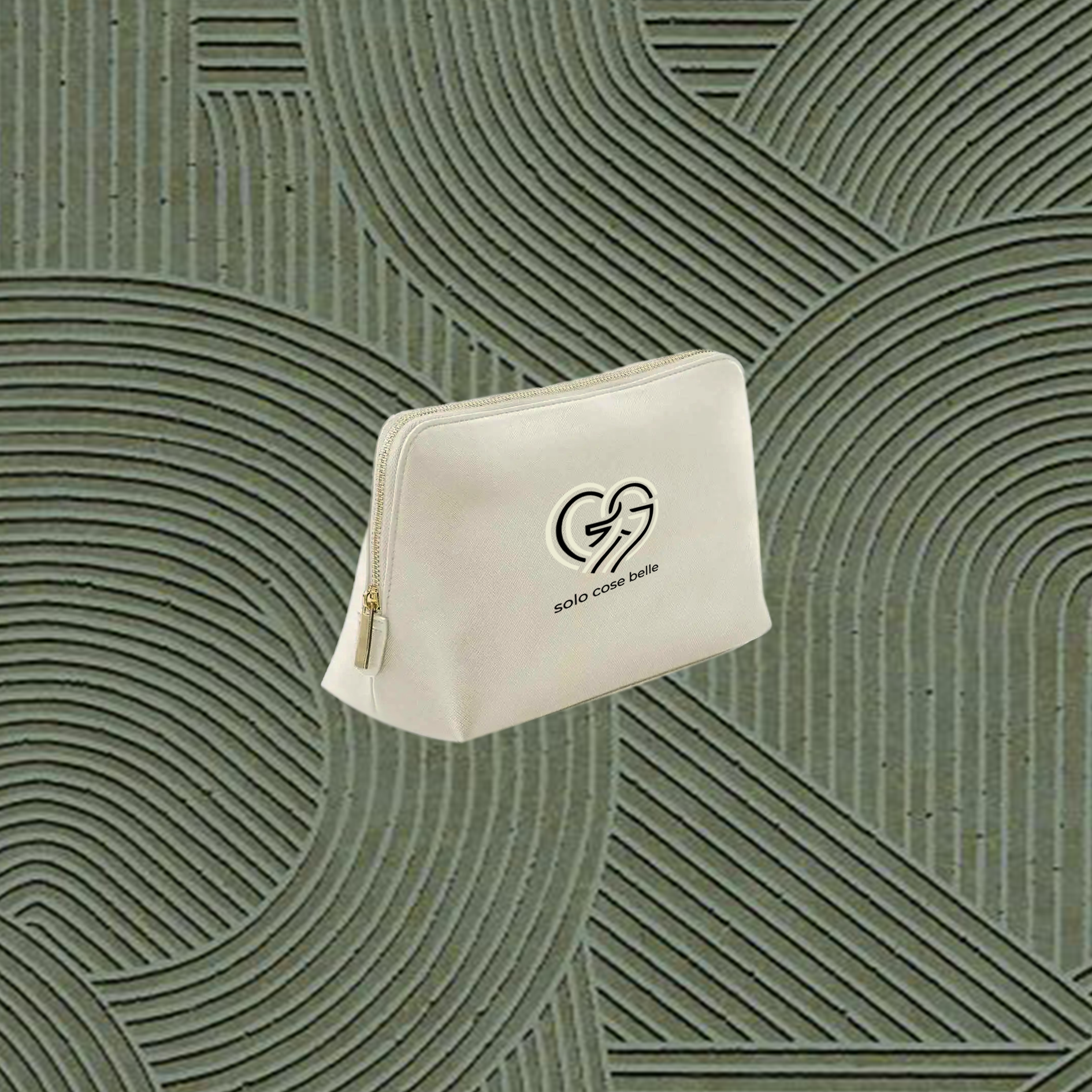 La zip dorata aggiunge una nota luminosa che valorizza il design pulito, rendendola perfetta sia come beauty da viaggio che come borsa da tutti i giorni.